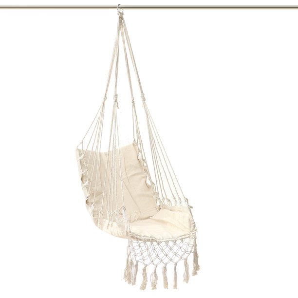 Hammock chair macrame swing, hanging chair for reading/leisure, 330 pound capacity, perfect for indoor/outdoor home, garden, deck, yard greenstell hammock chair macrame swing with cushion and hanging hardware kits, max 330 lbs hanging cotton rope swing chair, comfortable. A quick set up allows you to spend time with loved ones outside or enjoy some quiet reading time. Having a macrame swing chair hammock can and will make the world of a difference to any space. This complete hanging hammock chair and adjustable stand set is perfect for unique lounging in any outdoor space! Now that's a refreshing way to give a new meaning to hanging out.